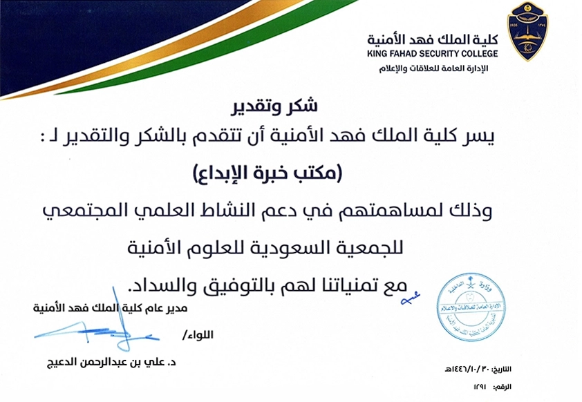 • أعداد خاصة من مجلة العلوم الأمنية لكلية الملك فهد الأمنية